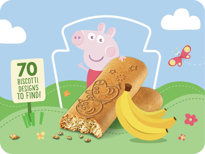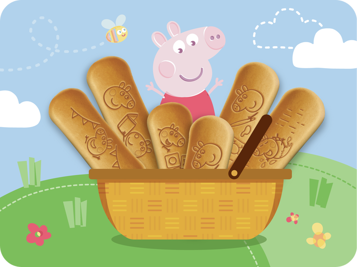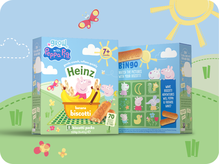 Upgrade snack time using Heinz biscotti, with 70 different stamp designs including Peppa, George and the rest of the family and friends!