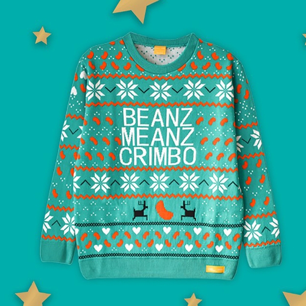 The cheerful "Christmas Beanz Means Crimbo" message is carefully woven into the fabric, celebrating the holiday season and everyone's favourite Heinz Beanz. With its eye-catching design, it's the perfect conversation starter at festive parties and gatherings. Embrace the holiday cheer and stay warm while doing it. Get ready to spread the Christmas magic with Heinz!